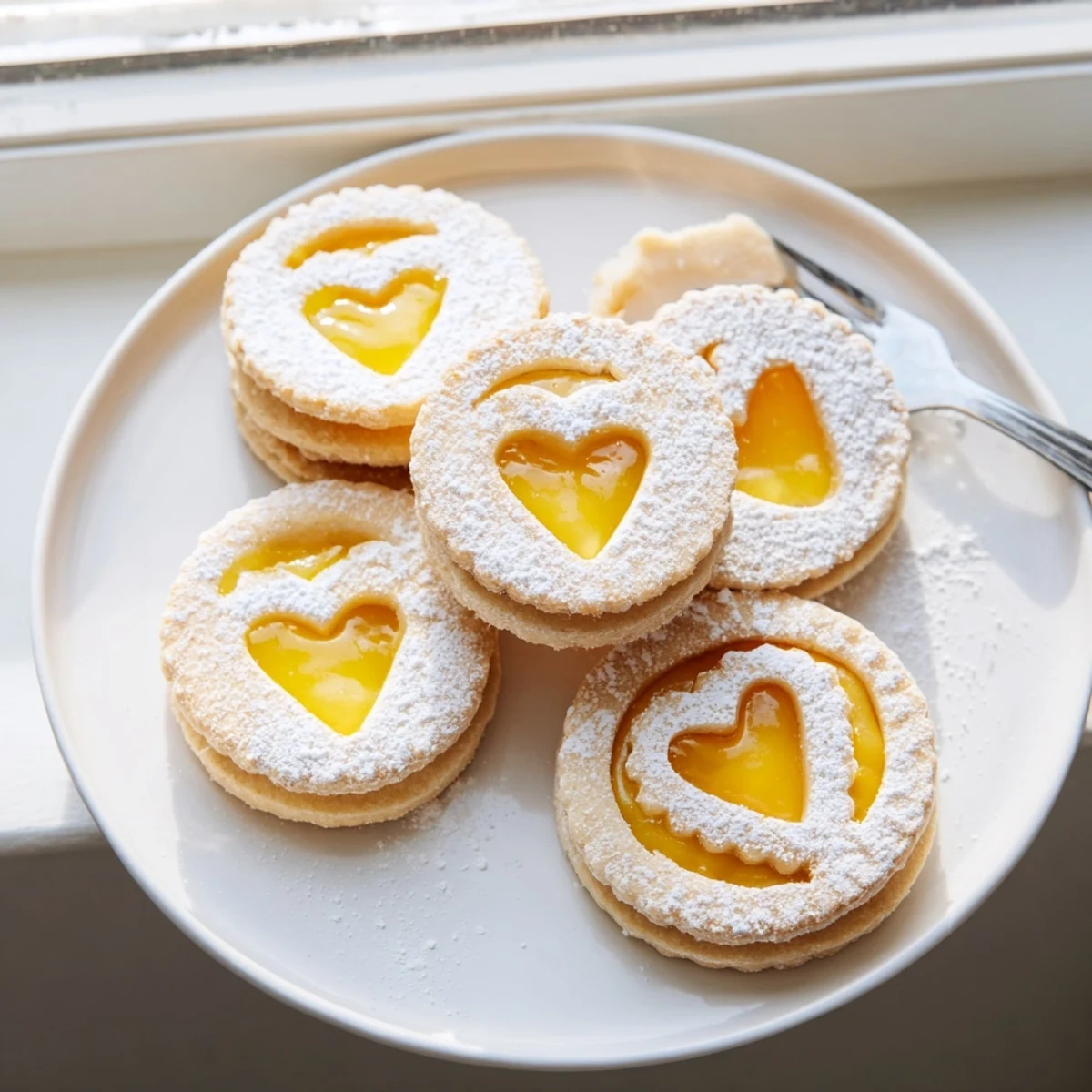 - Dust those windowed tops with powdered sugar until they look dusted with snow, then spread a modest spoonful of chilled curd on each solid bottom cookie before gently placing a windowed cookie on top. Press just enough to make them friends without forcing the curd to escape, then give them a quick chill to set everything into place.